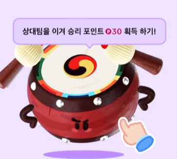 게임에 참여한 각 사용자는 1시간에 최대 5,000번까지 북을 칠 수 있는데요. 승리할 때마다 팀의 레벨이 상승하며, 레벨이 올라갈수록 승리 후 획득할 수 있는 보상 금액이 증가합니다. 이벤트 종료 시 최종 레벨에 따라 추가 보너스 포인트가 지급되며, 레벨이 높을수록 보상이 더 많아집니다.