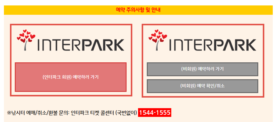 아래와 같이 축제 메인 사이트에서 인터파크 경로로 예약을 하러 가실 수 있습니다.